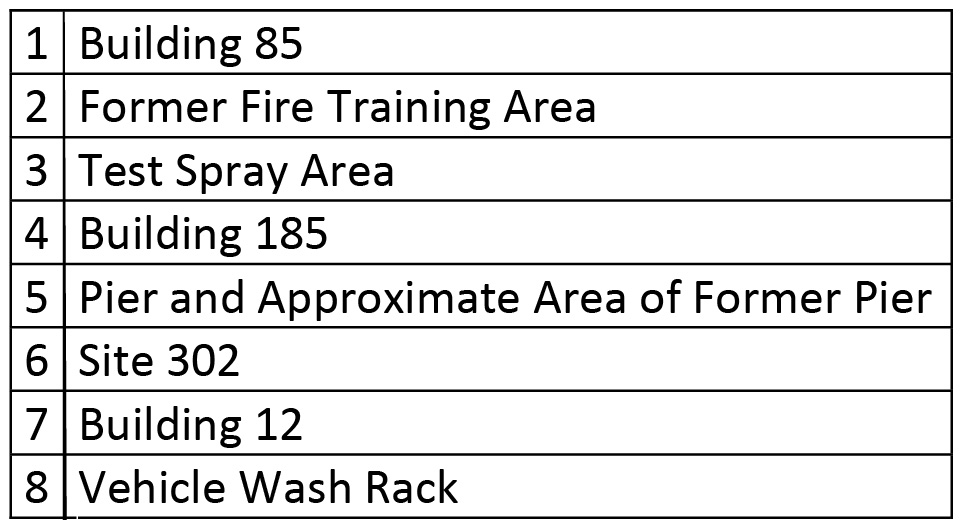 The 2021 Preliminary Assessment (PA) conducted at NBK-Manchester identified 8 on-base areas listed in Table 3, where releases of PFAS may have occurred. The PA was finalized in May 2021 and can be found here.